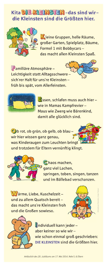 20 Jahre »Die Kleinsten« e.V.Am 17. Mai gab es anläßlich des 20-jährigen Bestehens unserer KiTa ein großes Fest.